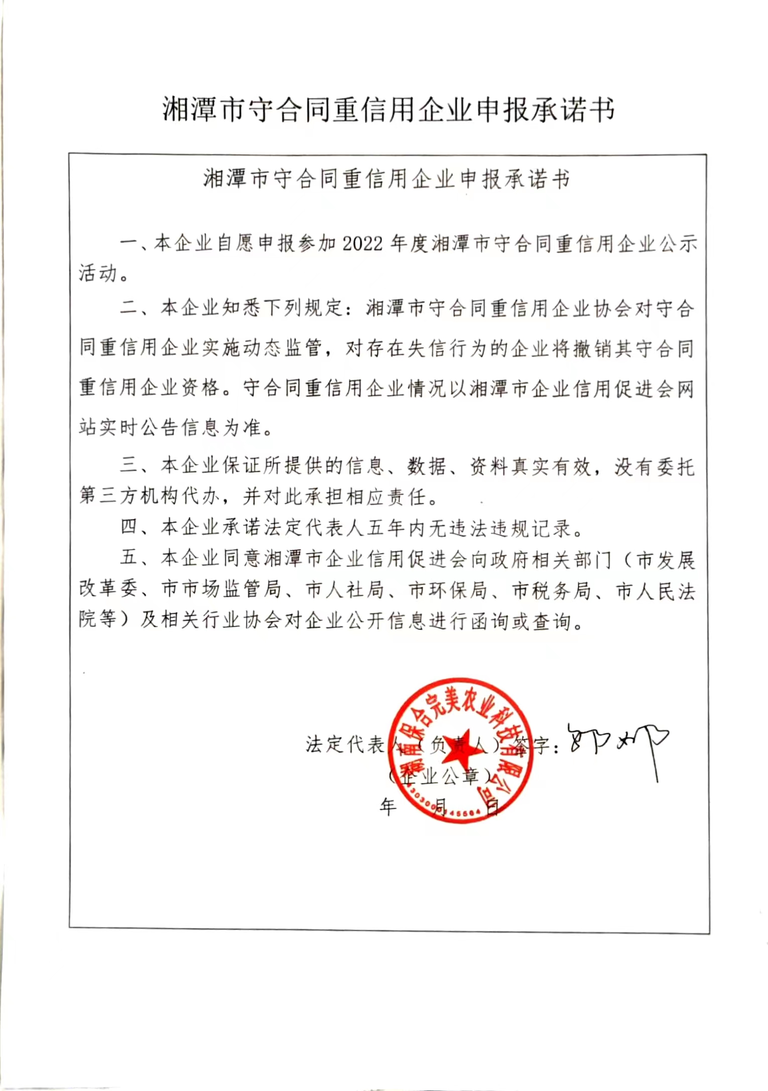 本企業(yè)根據(jù)《湘潭市守合同重信用企業(yè)申報規(guī)定》等編制 2022 年度企業(yè)信用報告書,并保證本報告書內(nèi)容真實、準確、完整。