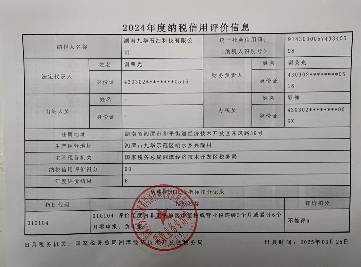 企業(yè)納稅信用等級報(bào)告: