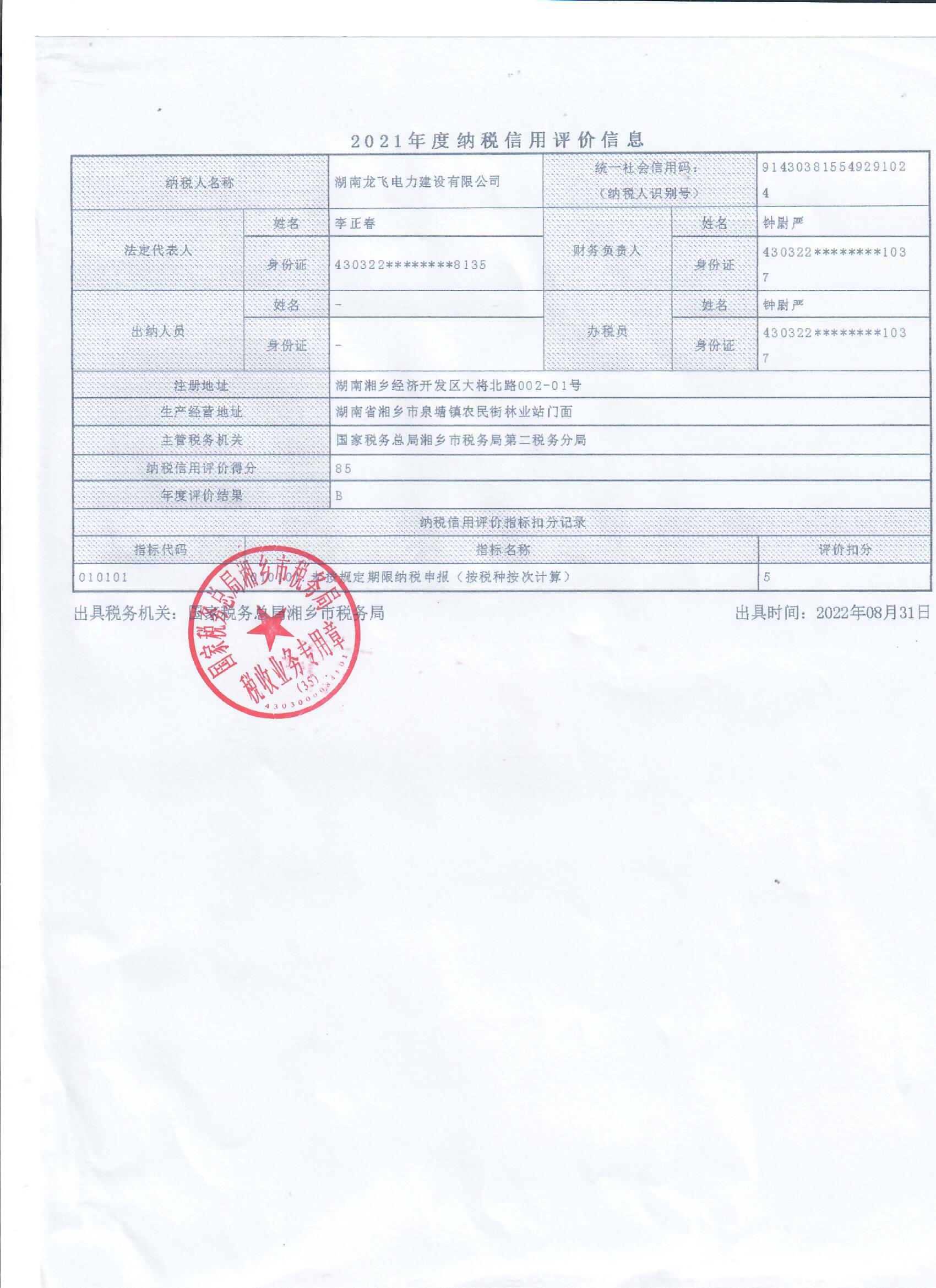 企業(yè)納稅信用等級報(bào)告: