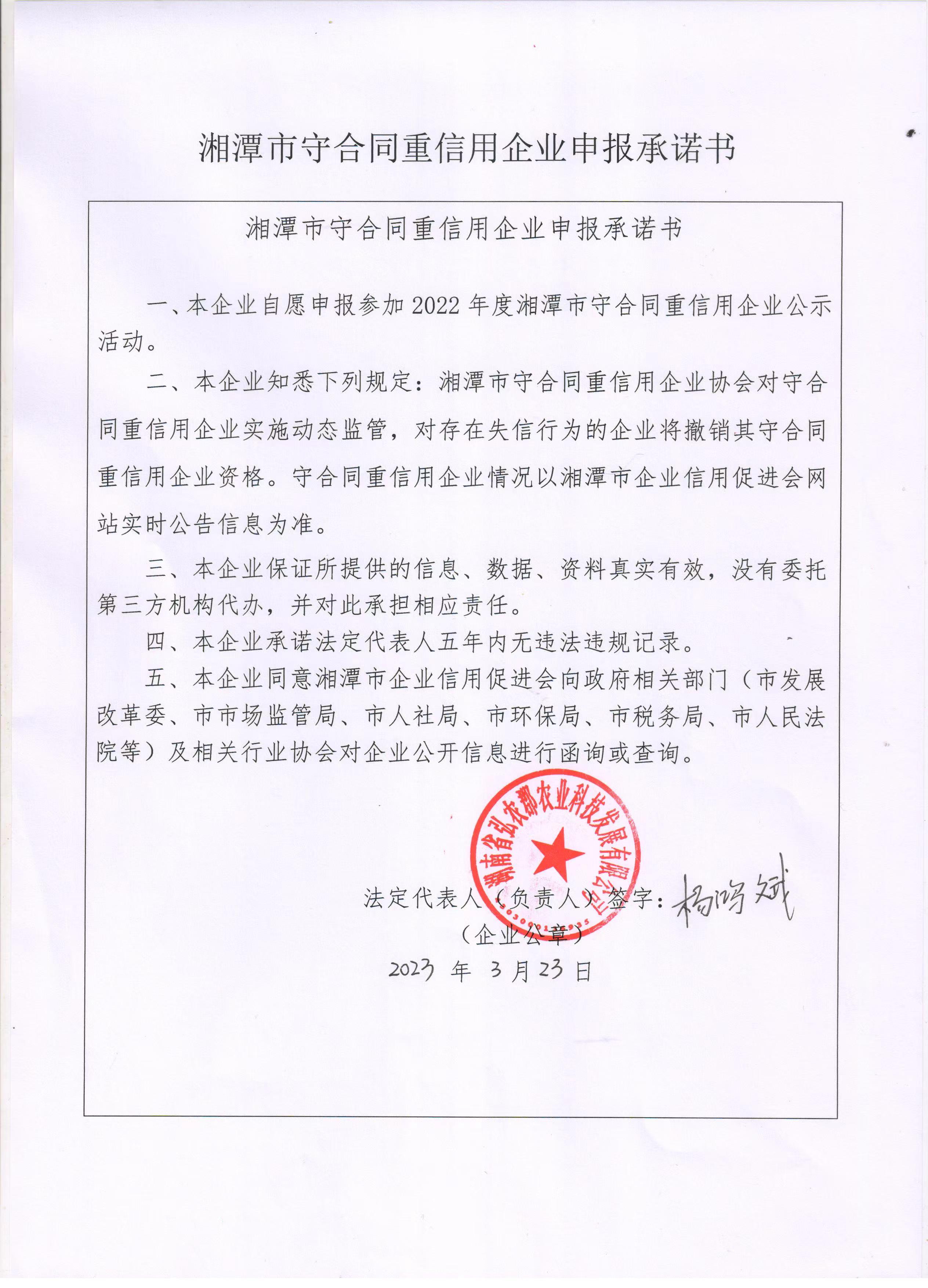 本企業(yè)根據(jù)《湘潭市守合同重信用企業(yè)申報規(guī)定》等編制 2022 年度企業(yè)信用報告書,并保證本報告書內容真實、準確、完整。