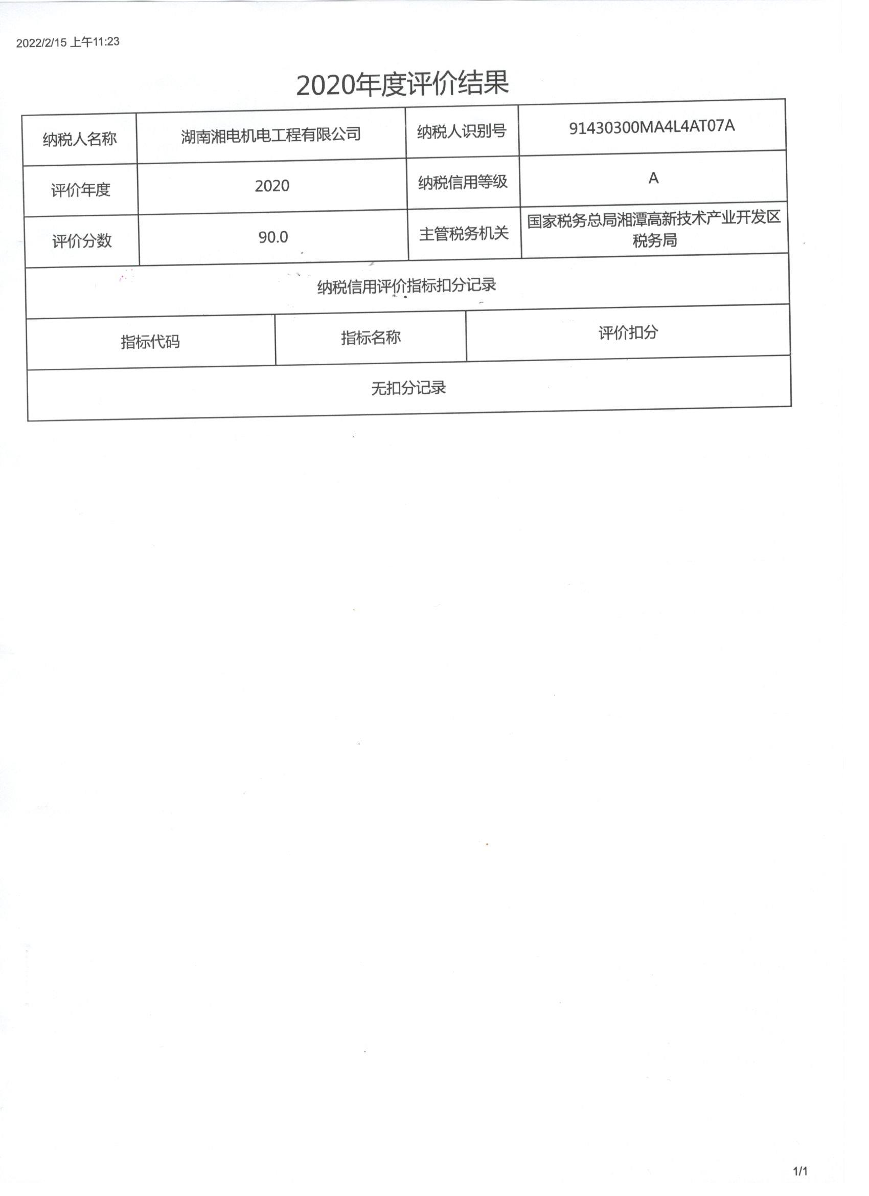 企業(yè)納稅信用等級(jí)報(bào)告: