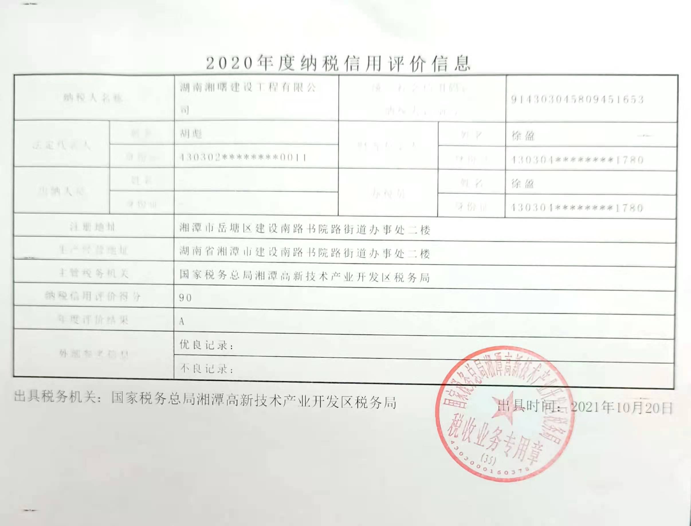 企業(yè)納稅信用等級(jí)報(bào)告: