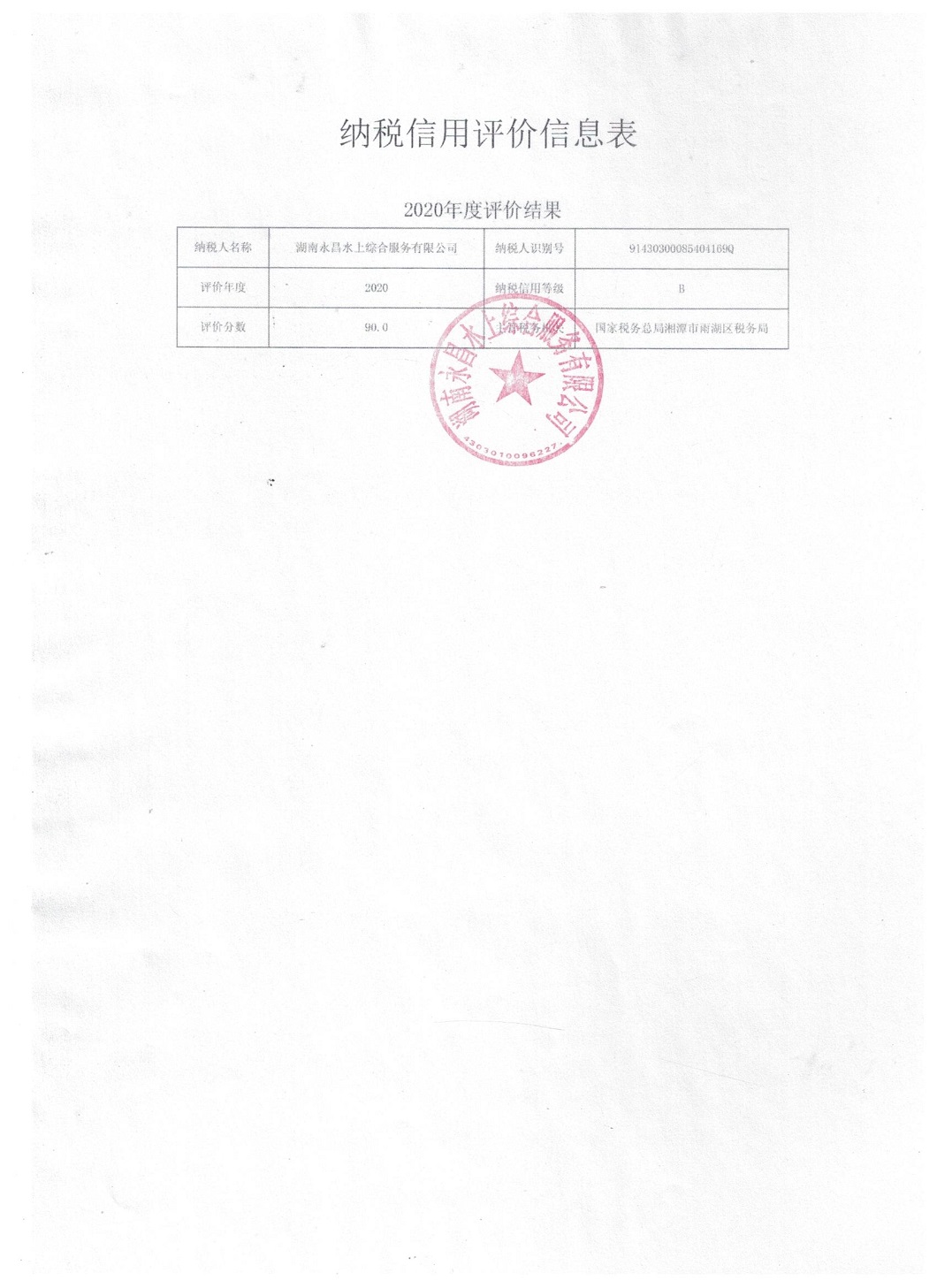 企業(yè)納稅信用等級(jí)報(bào)告: