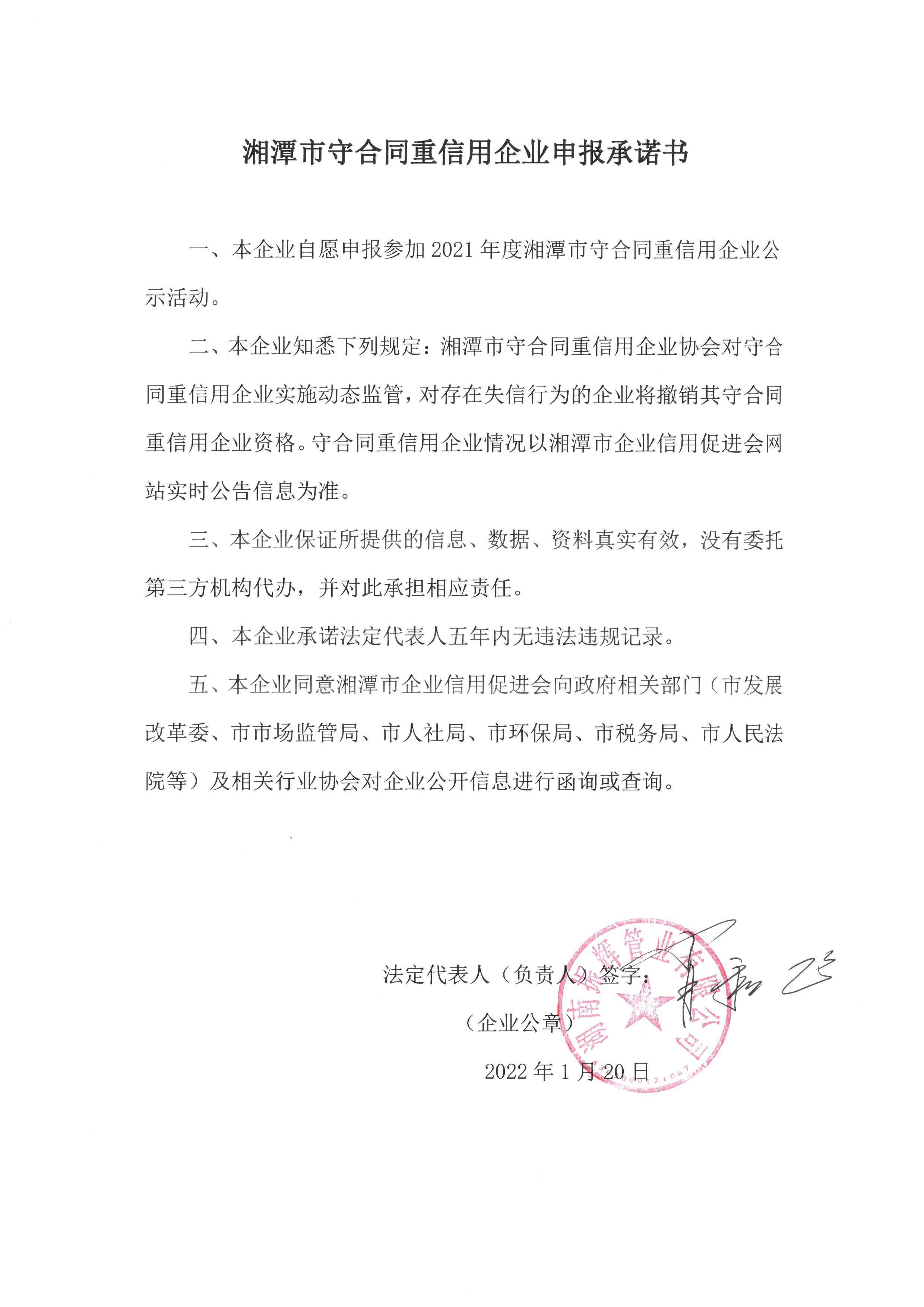 本企業(yè)根據(jù)《湘潭市守合同重信用企業(yè)申報規(guī)定》等編制 2021 年度企業(yè)信用報告書,并保證本報告書內(nèi)容真實、準確、完整。