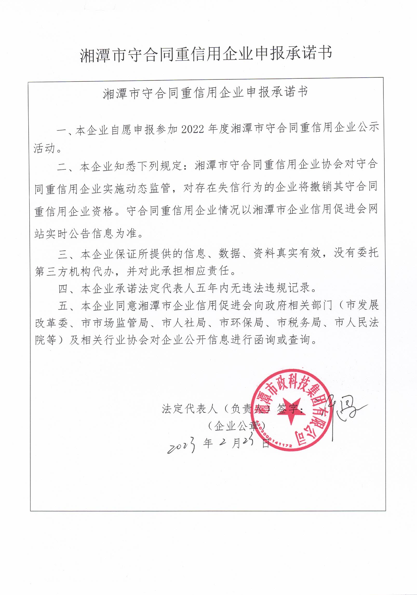本企業(yè)根據(jù)《湘潭市守合同重信用企業(yè)申報規(guī)定》等編制 2022 年度企業(yè)信用報告書,并保證本報告書內(nèi)容真實、準確、完整。